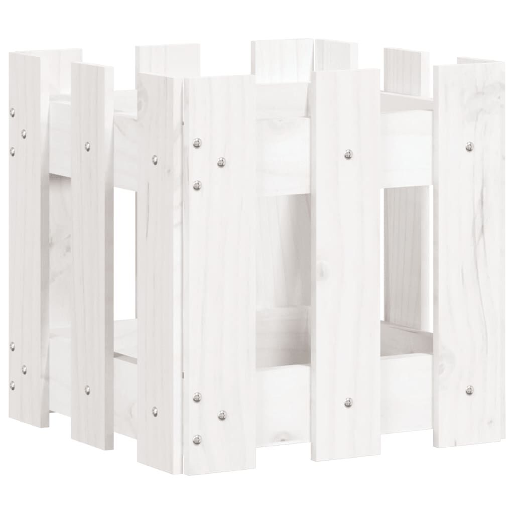 vidaXL Jardinière avec design de clôture blanc 30x30x30 cm pin massif