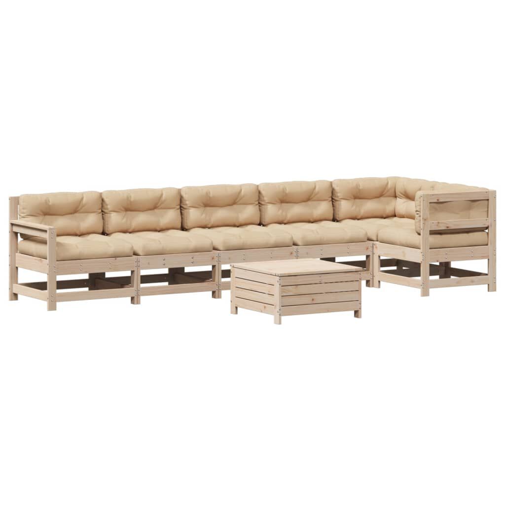 vidaXL Salon de jardin 7 pcs avec coussins Bois de pin massif